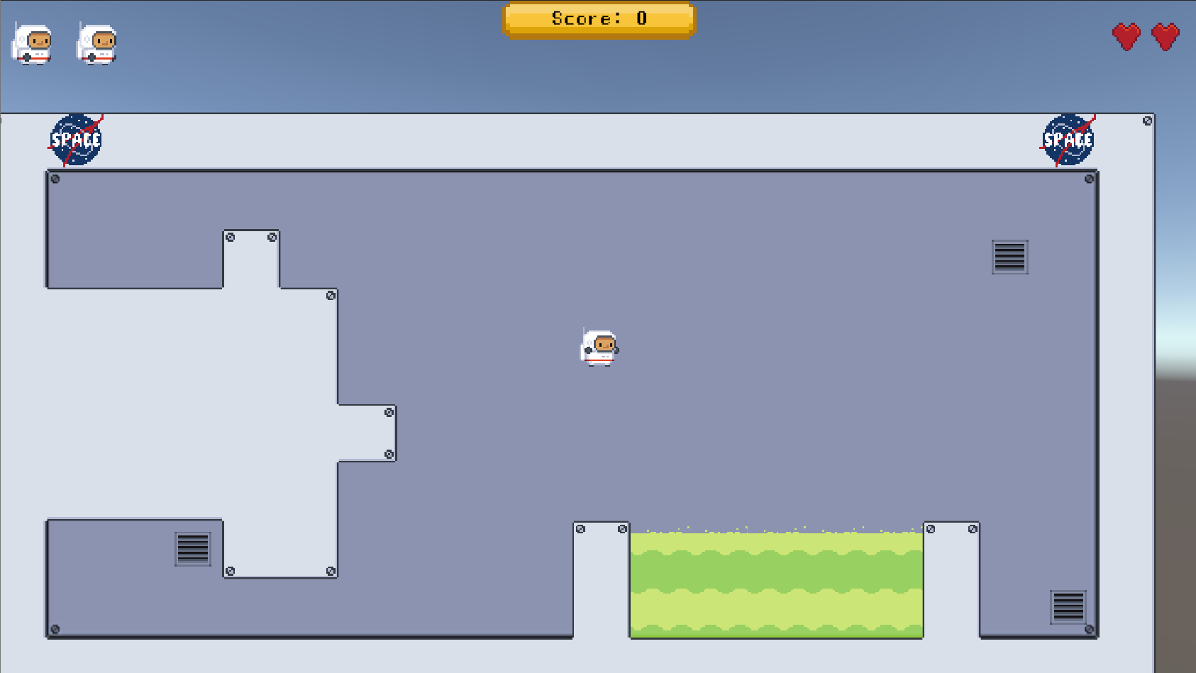 2D platformer in the small expanse of a space station, can you survive the corrsoive acid?